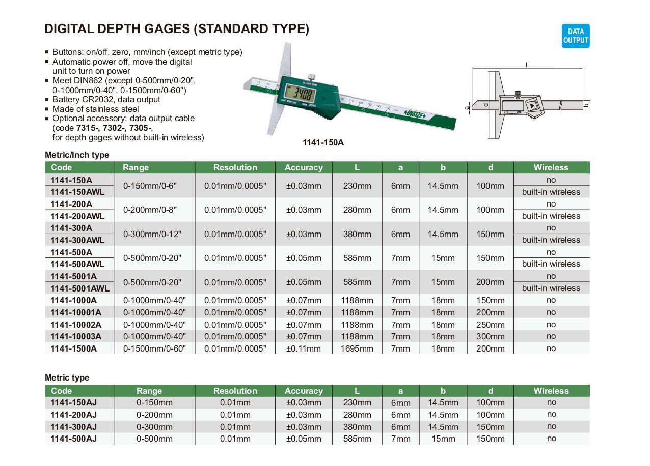 INSIZE 1141-10001A Digital Depth Gage (0-1000mm/0-40")