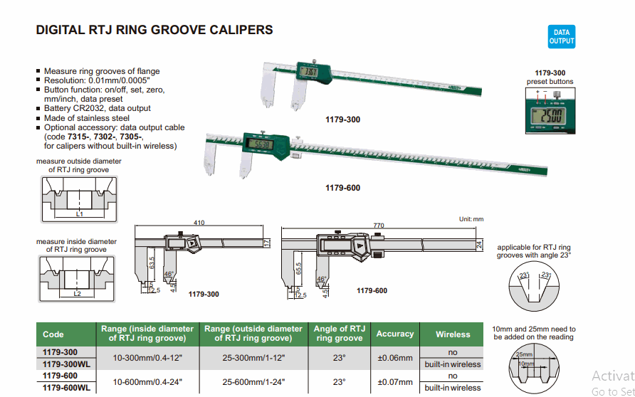 INSIZE 1179-600WL Digital RTJ Ring Groove Caliper (10-600mm/0.4-24” or 25-300mm/1-12”) | EMIN.COM.MM