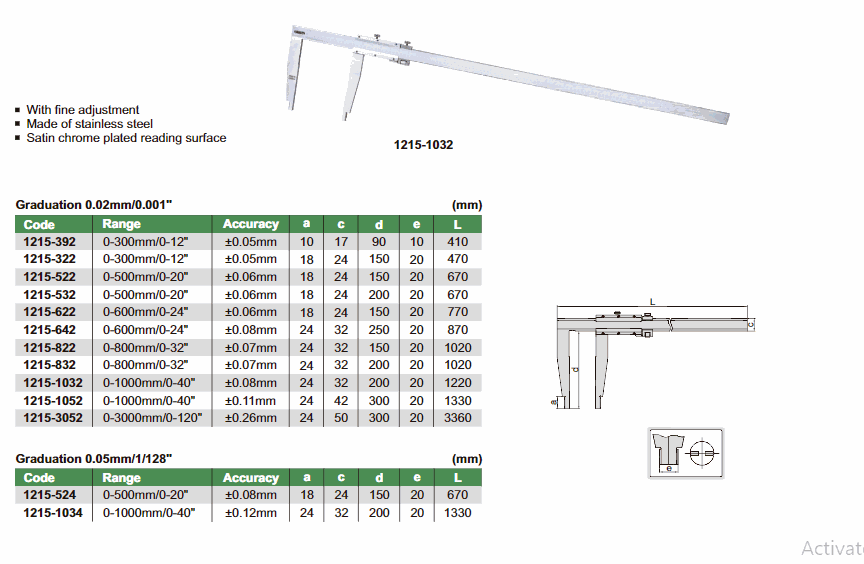INSIZE 1215-3052 Long Jaw Vernier Caliper (0~3000mm) | EMIN.COM.MM