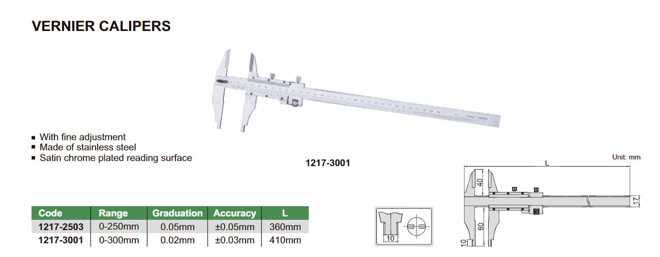 INSIZE 1217-2503 Vernier Caliper (0~250mm) | EMIN.COM.MM