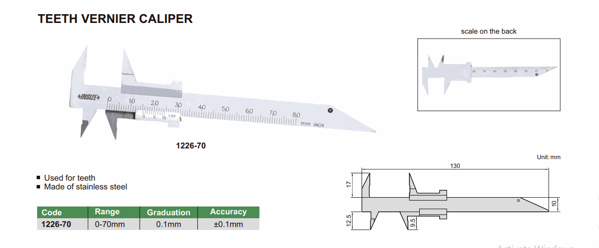 INSIZE 1226-70 Teeth Vernier Caliper (0-70mm; 0.1mm)