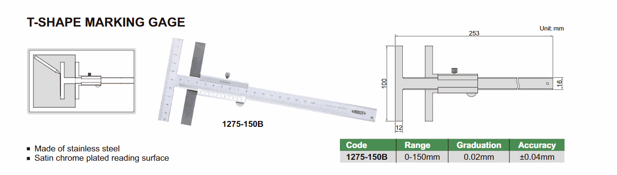 INSIZE 1275-150A T-Shape Marking Gage (0~150mm) | EMIN.COM.MM