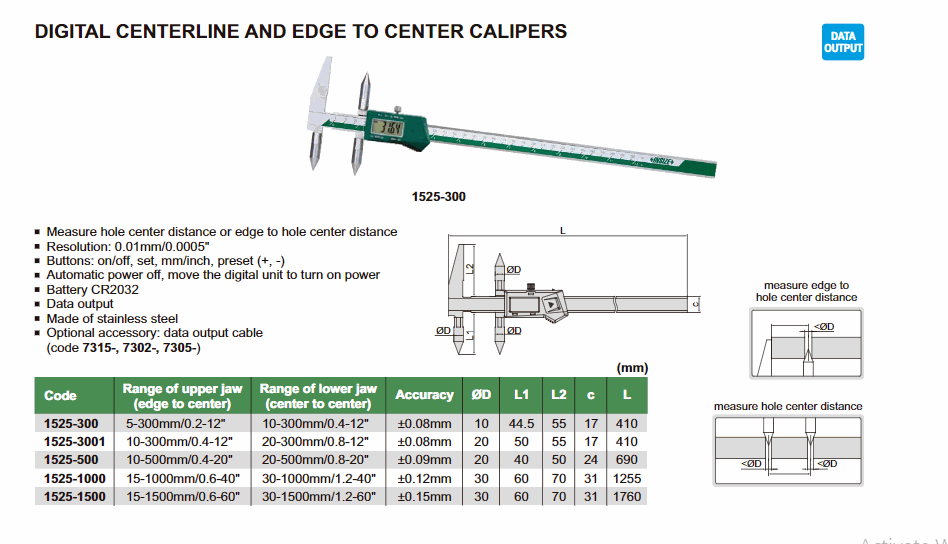 INSIZE 1525-1000 Digital Centerline/Edge To Center Caliper (15~1000mm; 30~1000mm) | EMIN.COM.MM
