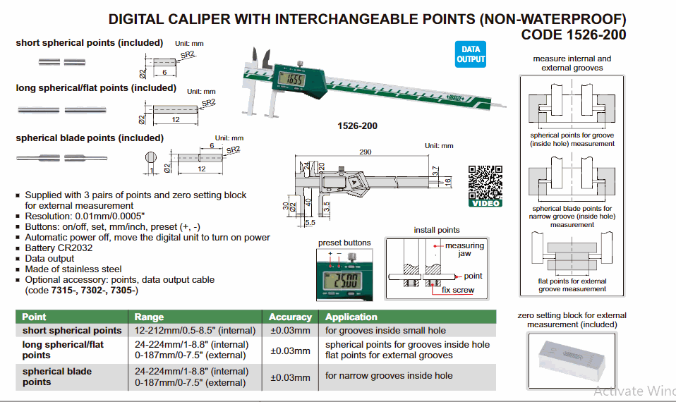 INSIZE 1526-200 Digital Caliper With Interchangeable Points (0.01mm/0.0005")