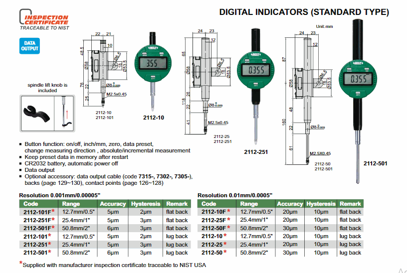 INSIZE 2112-50F Digital Indicator (Standard type) (50.8mm/2"; 0.01mm/0.0005") | EMIN.COM.MM