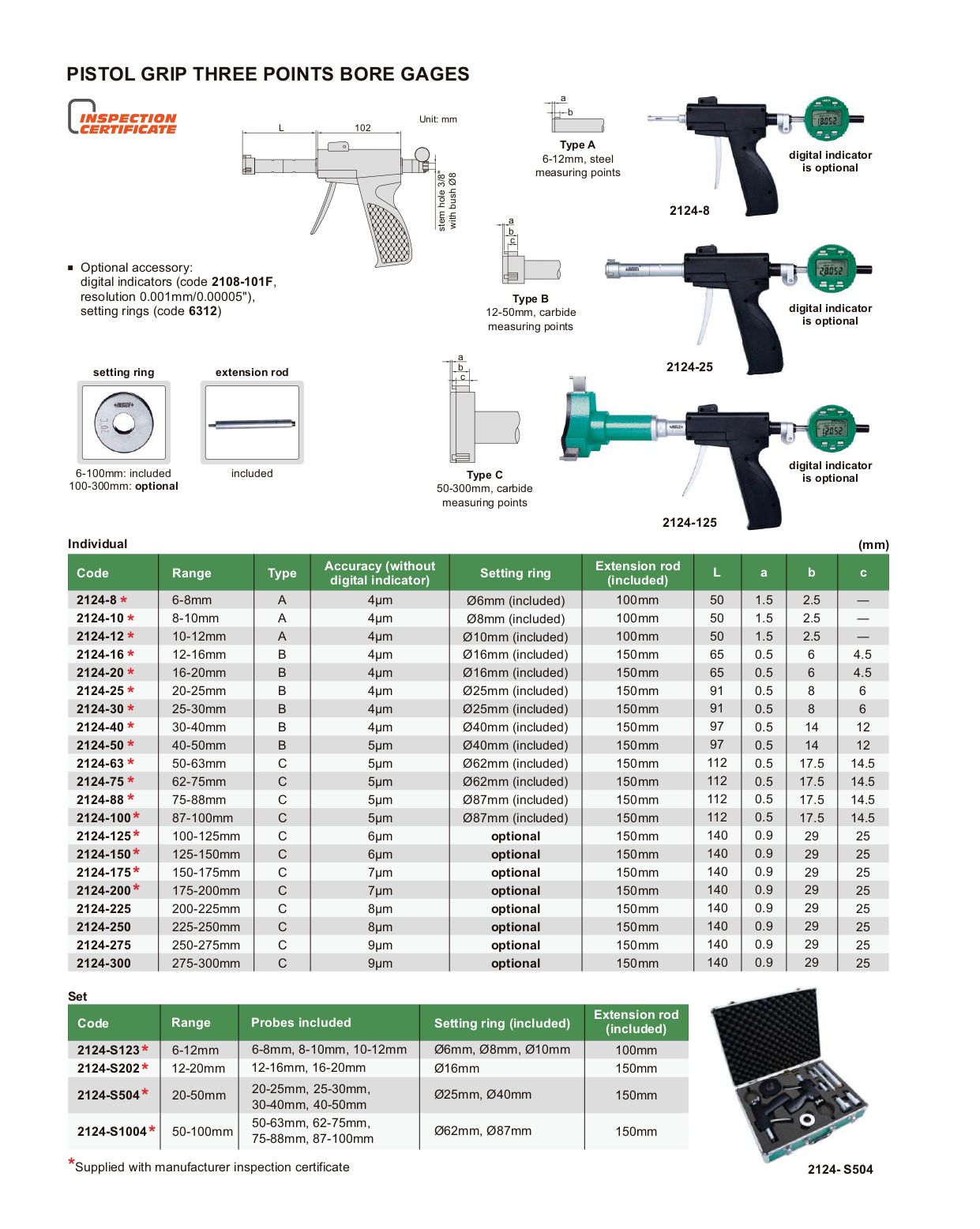 INSIZE 2124-63 Pistol Grip Three Points Bore Gage (50-63mm; Type C) | EMIN.COM.MM