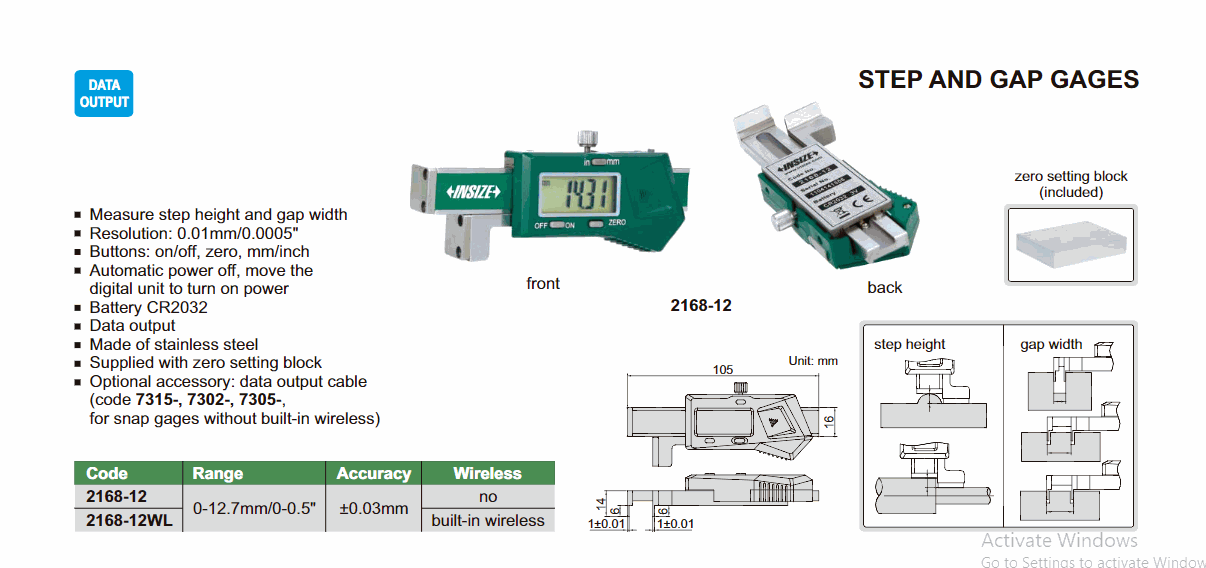 INSIZE 2168-12WL Step And Gap Gage (0~12.7mm/0~0.5") | EMIN.COM.MM