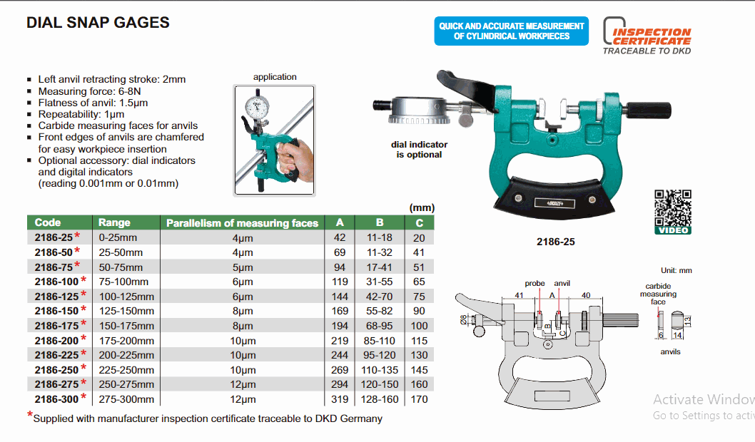 INSIZE 2186-50 Dial Snap Gage (25-50mm)