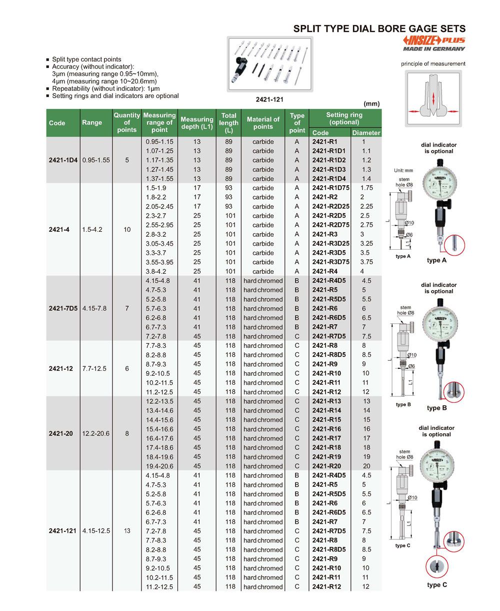 INSIZE 2421-7D5 Split Type Dial Bore Gage Set (4.15-7.8mm, 7)