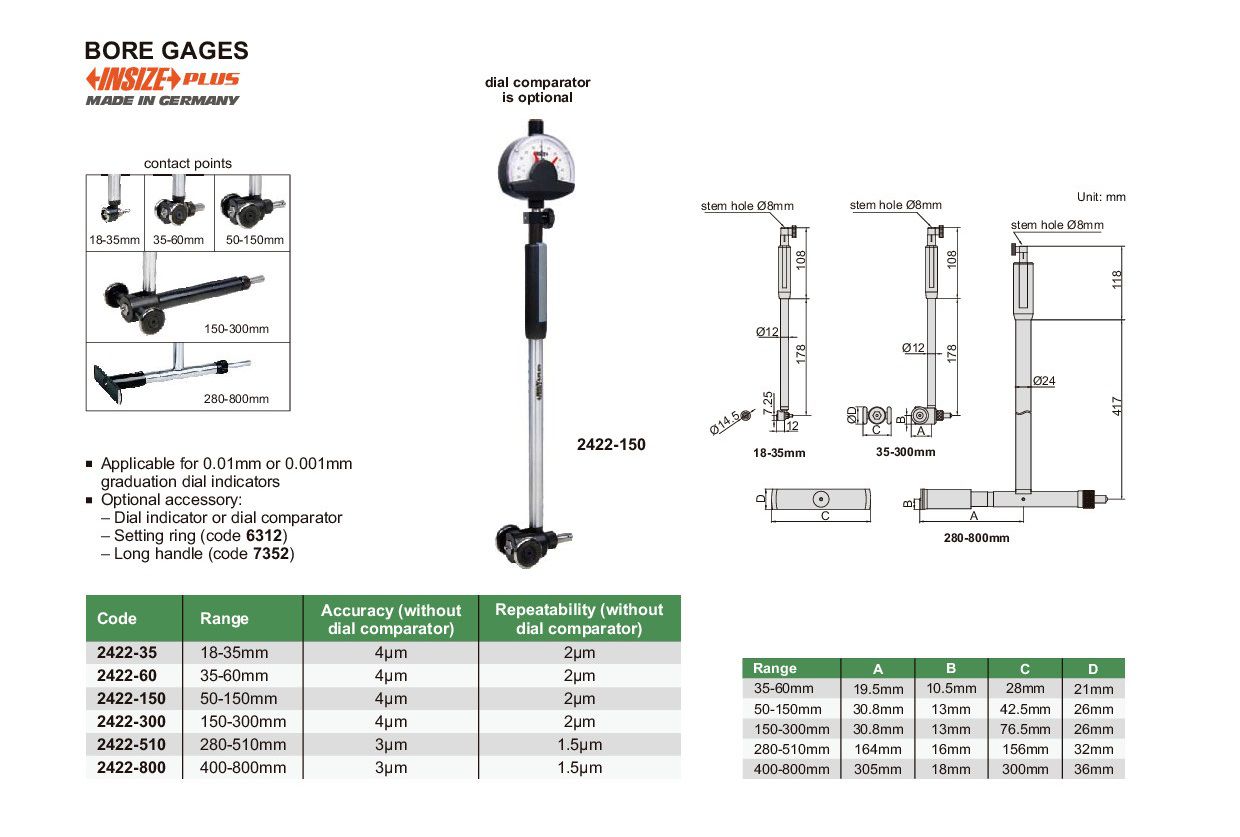 INSIZE 2422-150 Dial Bore Gage (50-150mm)