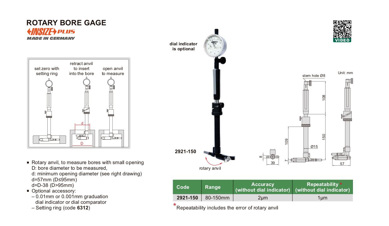 INSIZE 2921-150 Rotary Bore Gage (80-150mm) | EMIN.COM.MM