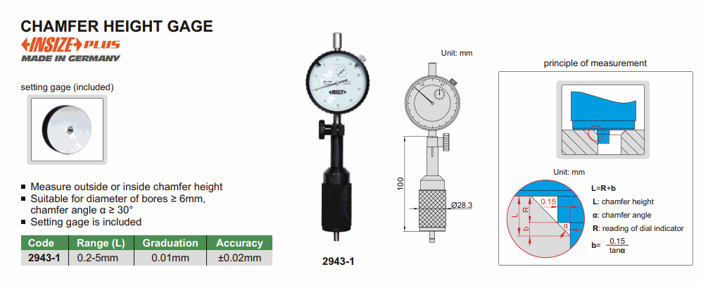 INSIZE 2943-1 Chamfer Height Gage (0.2-5mm; 0.01mm; ±0.02mm)