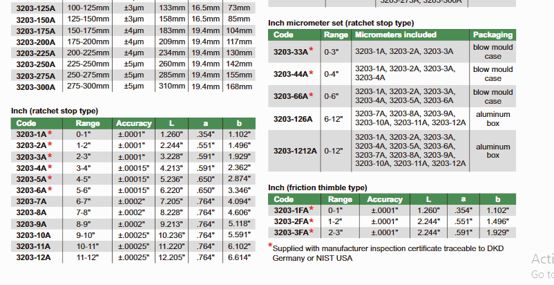 - Metric: 0.01mm