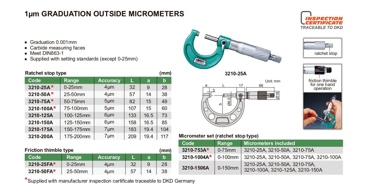 INSIZE 3210-25A Graduation Outside Micrometer (0-25mm/0.001mm) | EMIN.COM.MM