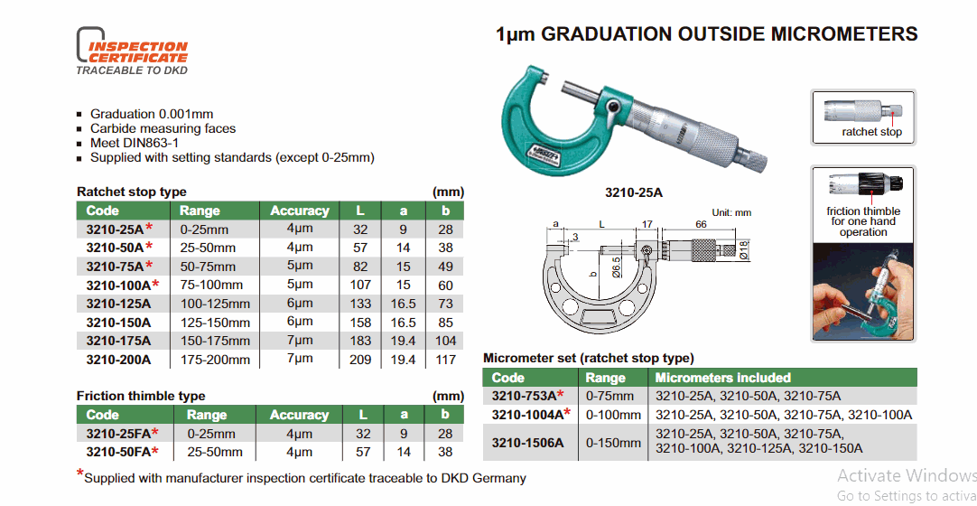 INSIZE 3210-25FA 1μm Graduation Outside Micrometer (0-25mm; 0.001mm) | EMIN.COM.MM