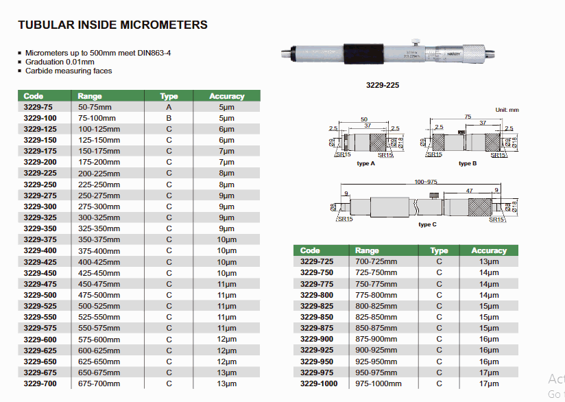 INSIZE 3229-350 Tubular Inside Micrometer (325-350mm; Accuracy: 9µm)