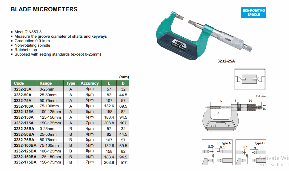 INSIZE 3232-50BA Blade Micrometer (25-50mm; 4µm) | EMIN.COM.MM