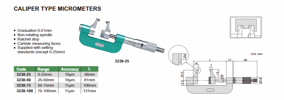 INSIZE 3238-25 Caliper Type Micrometer (0-25mm; 0.01mm; 10µm) | EMIN.COM.MM
