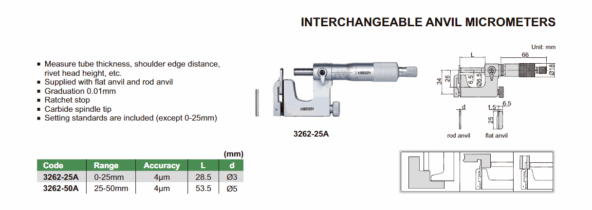 INSIZE 3262-50A Interchangeable Anvil Micrometer (25-50mm; 0.01mm) | EMIN.COM.MM