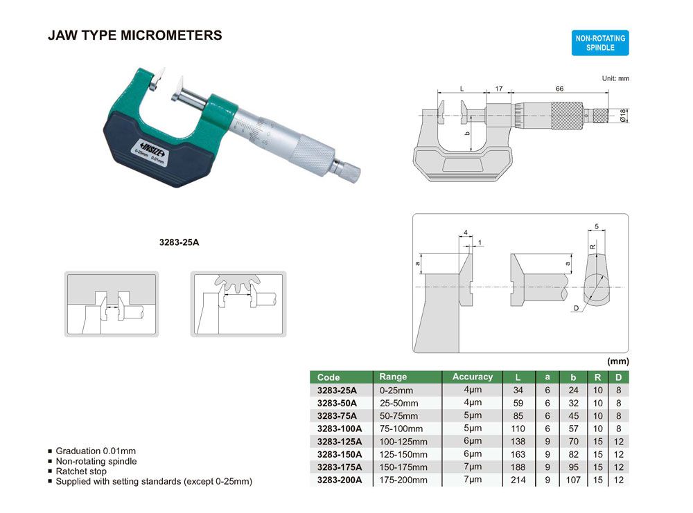 INSIZE 3283-175A Jaw Type Micrometer (150-175mm; 0.01mm) | EMIN.COM.MM