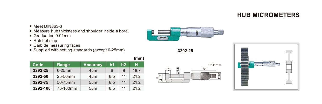 INSIZE 3292-25 Hub Micrometer (0-25mm; 0.01mm) | EMIN.COM.MM