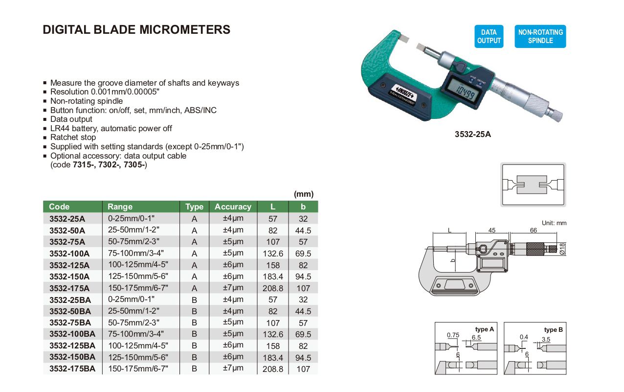 INSIZE 3532-100BA Digital Blade Micrometer (75-100mm/3-4"/Type B)