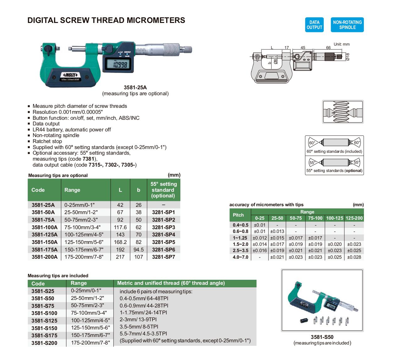 INSIZE 3581-100A Digital Screw Thread Micrometer (75-100mm/3-4") | EMIN.COM.MM