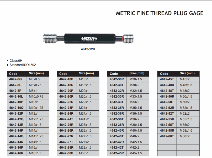 INSIZE 4642-10L Metric Fine Thread Plug Gage (M10X0.75mm, 6H) | EMIN.COM.MM