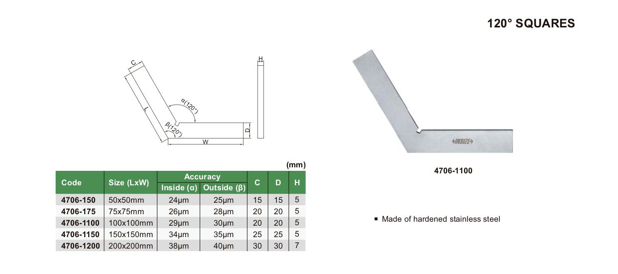 INSIZE 4706-1100 120° Square (120°; 100x100mm)