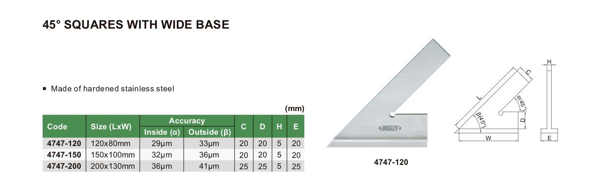 INSIZE 4747-150 45° Square With Wide Base (45°; 150x100mm) | EMIN.COM.MM