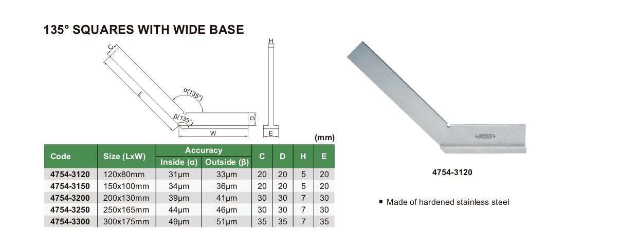 INSIZE 4754-3120 135° Square With Wide Base (135°; 120x80mm) | EMIN.COM.MM