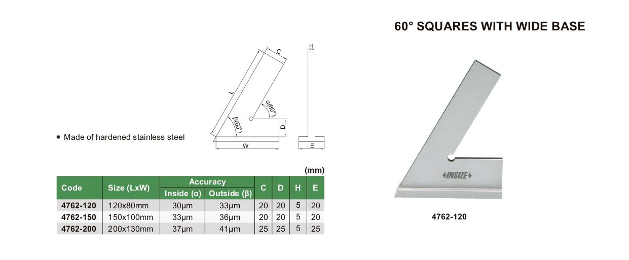 INSIZE 4762-200 60° Square With Wide Base (60°; 200x130mm) | EMIN.COM.MM