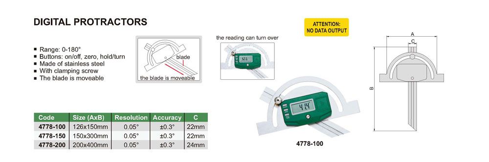 INSIZE 4778-150 Digital Protractor (0-180°, 150x300mm, 0.05°)
