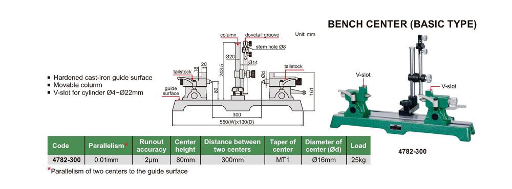 INSIZE 4782-300 Bench Center (0.01mm; 300mm; 80mm) | EMIN.COM.MM