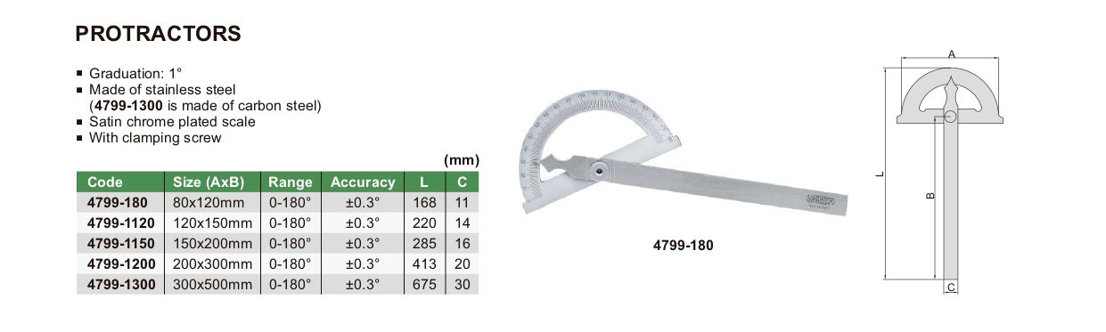 INSIZE 4799-1120 Protractor (0-180°, 120x150mm)