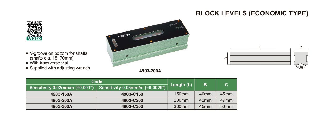 INSIZE 4903-C200 Block Level (200mm, 0.05mm/m)