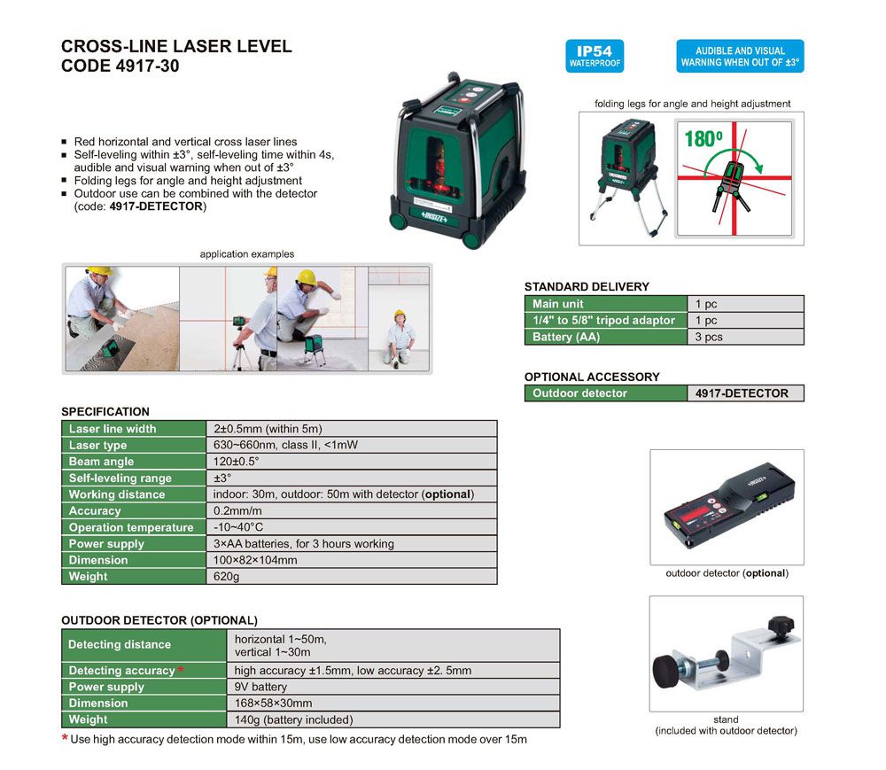 INSIZE 4917-30 Cross-Line Laser Level (2±0.5mm;±3°) | EMIN.COM.MM