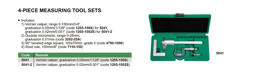 INSIZE 5041-2 4- Piece Measuring Tool Set (0-150mm/0-6", 0-25mm)