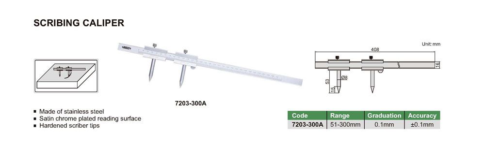 INSIZE 7203-300A Scribing Caliper (51-300mm; 0.1mm; ±0.1mm) | EMIN.COM.MM