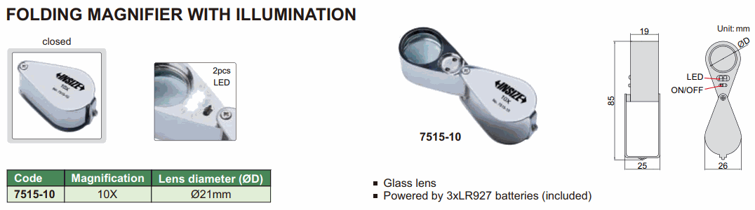 INSIZE 7515-10 Folding Magnifier with illumination | EMIN.COM.MM