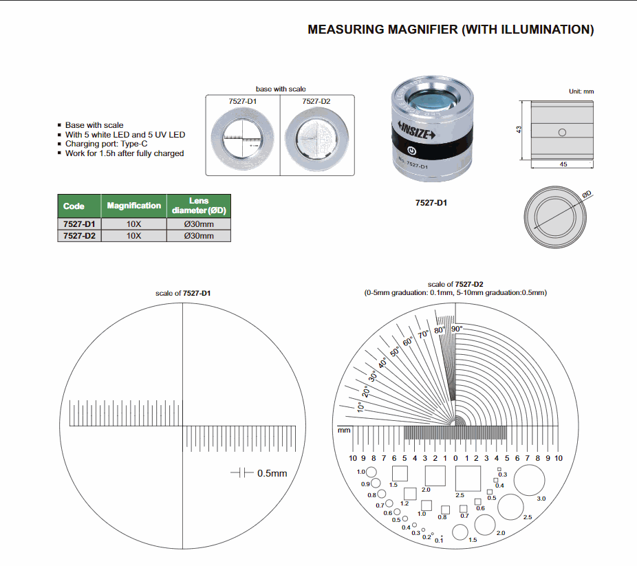 INSIZE 7527-D1 Measuring Magnifier (With Illumination) (10X) | EMIN.COM.MM