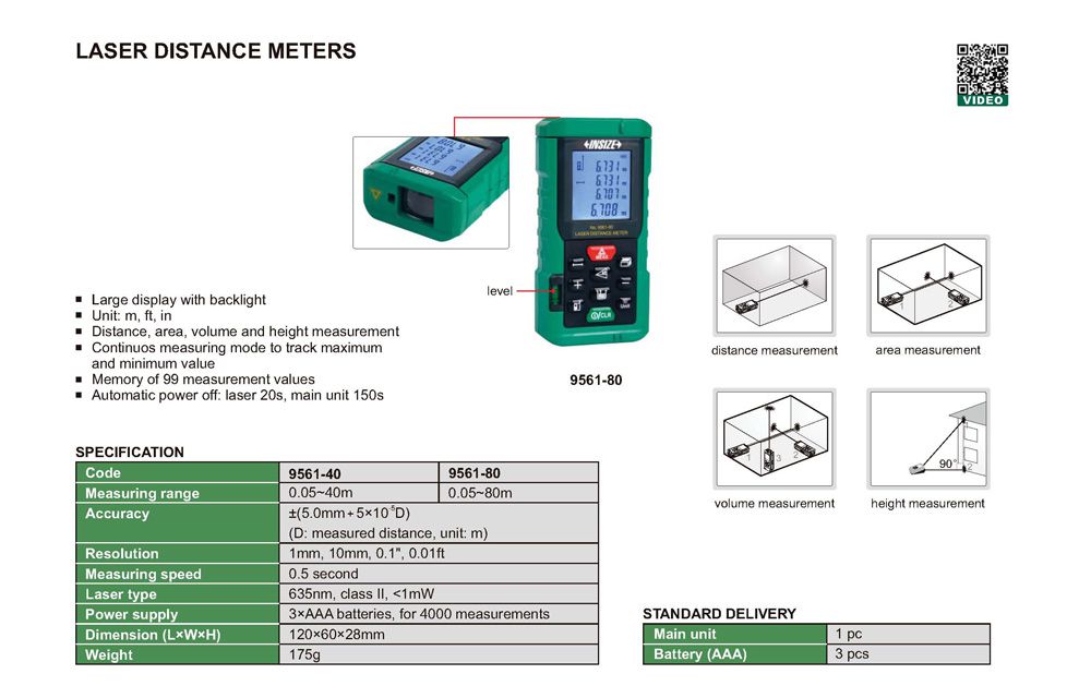INSIZE 9561-40 Laser Distance Meter (0.05~40m; ±(5.0mm+5x10-5D))