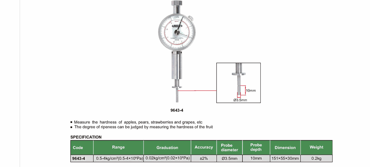 INSIZE 9643-4 Fruit Hardness Tester (0.5-4kg/cm2 (0.5-4x10^5Pa)) | EMIN.COM.MM