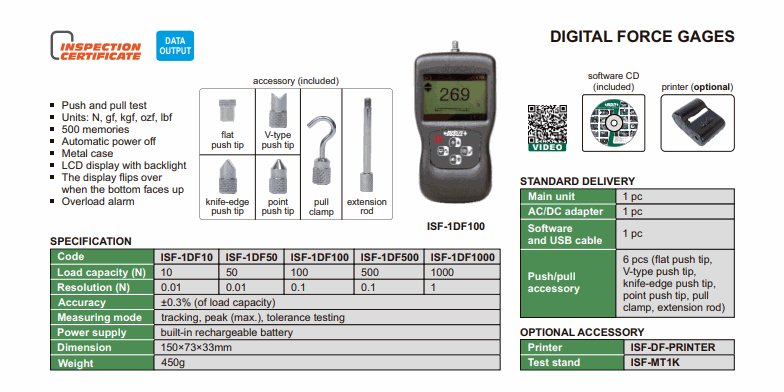 -Push/pull accessory: 6pcs (flat push tip, V-type push tip, point push tip, knife-edge push tip, pull clamp, extension rod)