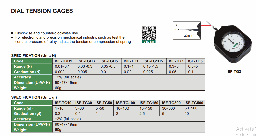 INSIZE ISF-TG100 Dial Tension Gage (10~100gf; 2gf; ±2%) | EMIN.COM.MM