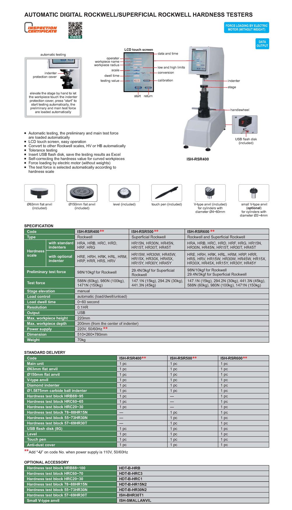 -With standard indenters: RH15N, RH30N, RH45N, RH15T, RH30T, RH45T