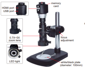 Standard Delivery: main unit 8G card and holder, HDMI cable, USB cable and sofware, Calibration rule: graduation 0.1mm and 1mm.