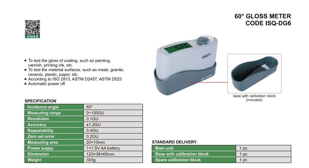 INSIZE ISQ-DG6 60° Gloss Meter (0~150GU; ±1.2GU) | EMIN.COM.MM