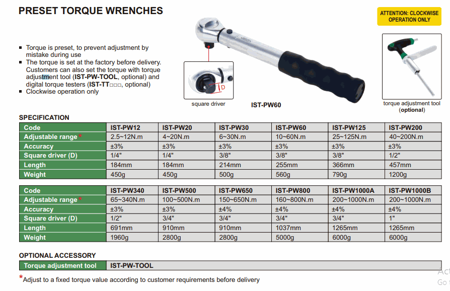 INSIZE IST-PW1000B Preset Torque Wrench (200~1000N.m; ±4%; 1") | EMIN.COM.MM