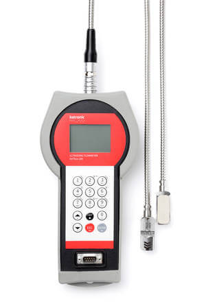 Katronic KATflow 200 Hand-held clamp-on ultrasonic flowmeter (0.01~25 m/s; with crush-proof transport case IP 67, power adapter/battery charging un it, measuring tape)